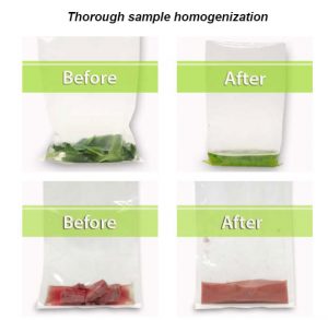 Các mẫu có thể tích lên đến 400ml được cho vào túi trộn vô trùng một cách tiện lợi, sau đó được niêm phong khi đóng cửa. Các cánh khuấy nhanh chóng đập vào túi, tạo ra sự trộn đều và đồng nhất mà không tiếp xúc trực tiếp với mẫu. Việc lập trình rất dễ dàng – tốc độ trộn và thời gian chu kỳ được điều chỉnh dễ dàng trên màn hình cảm ứng màu lớn. Vị trí của cánh khuấy có thể được điều chỉnh để đảm bảo xử lý mẫu hiệu quả. Đối với các ứng dụng yêu cầu điều chỉnh nhiệt độ (như xét nghiệm giun xoắn Trichinella trong thịt), buồng có thể được làm nóng và duy trì ở nhiệt độ lên đến 65°C.