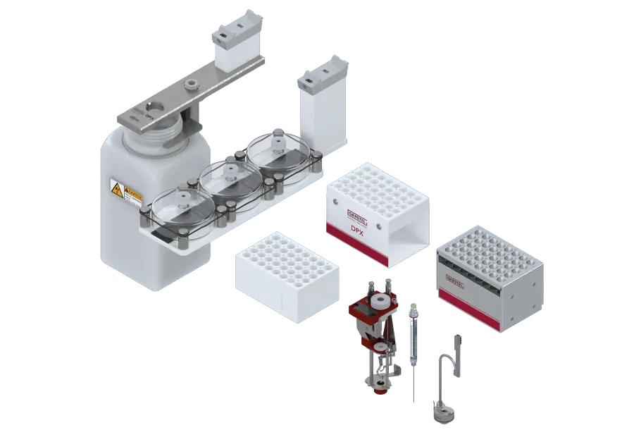 Tùy chọn DPX cho phép tự động hóa quá trình chiết pha rắn phân tán ngay trước khi tiêm bằng cách sử dụng thiết bị lấy mẫu đa năng MPS. Sử dụng tùy chọn DPX, bạn có thể làm giàu và tinh chế các chất phân tích từ một mẫu. Một quy trình chiết pha rắn hoàn toàn tự động trên quy mô thu nhỏ trong một đầu tip pipet dùng một lần có thể được thực hiện chỉ với lượng mẫu nhỏ. Hệ thống được điều khiển bằng phần mềm MAESTRO. Ngay trên phần mềm, tất cả các bước chuẩn bị mẫu có thể được thiết lập sẵn để tiết kiệm thời gian.