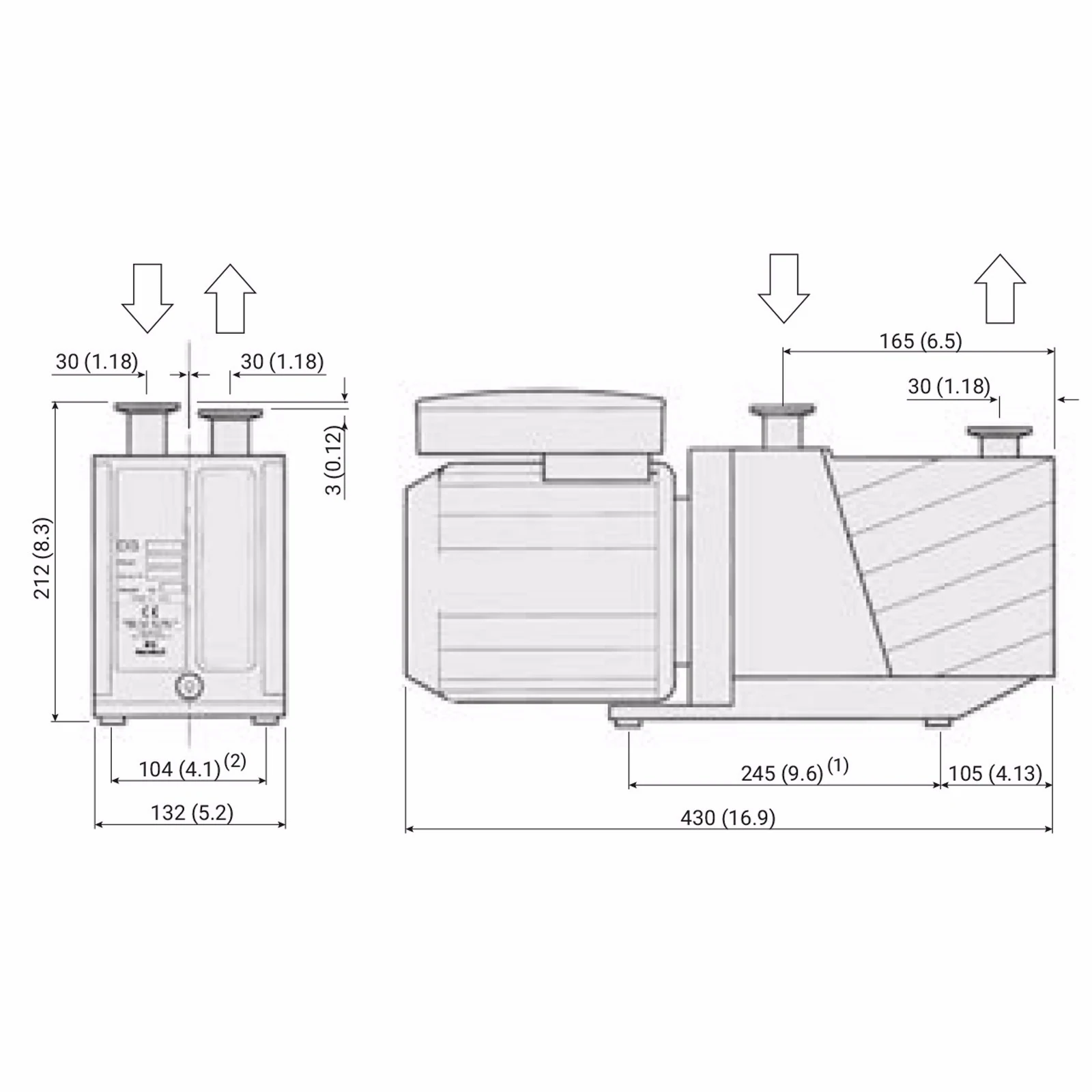 - Thiết kế giai đoạn kép cho phép vận hành ở áp suất thấp 10-3 mbar, nhiệt độ vận hành thấp, dòng chảy ngược tối thiểu ở áp suất thấp, hiệu suất bơm tốt và chấn lưu khí ở vùng áp suất thấp 10-2 mbar.