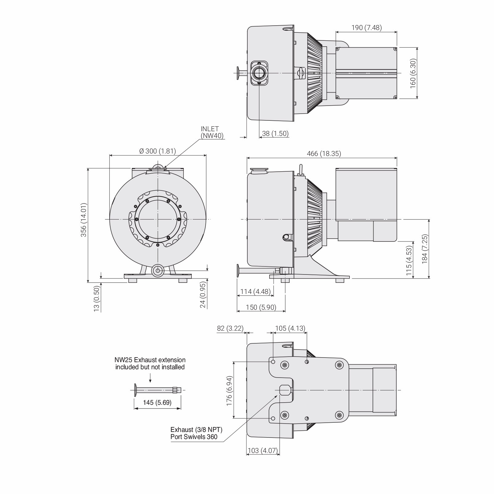 - Tốc độ bơm cao (30 m3/h, 500 L/phút) và áp suất cuối cùng thấp mang lại chân không khô, sạch.
