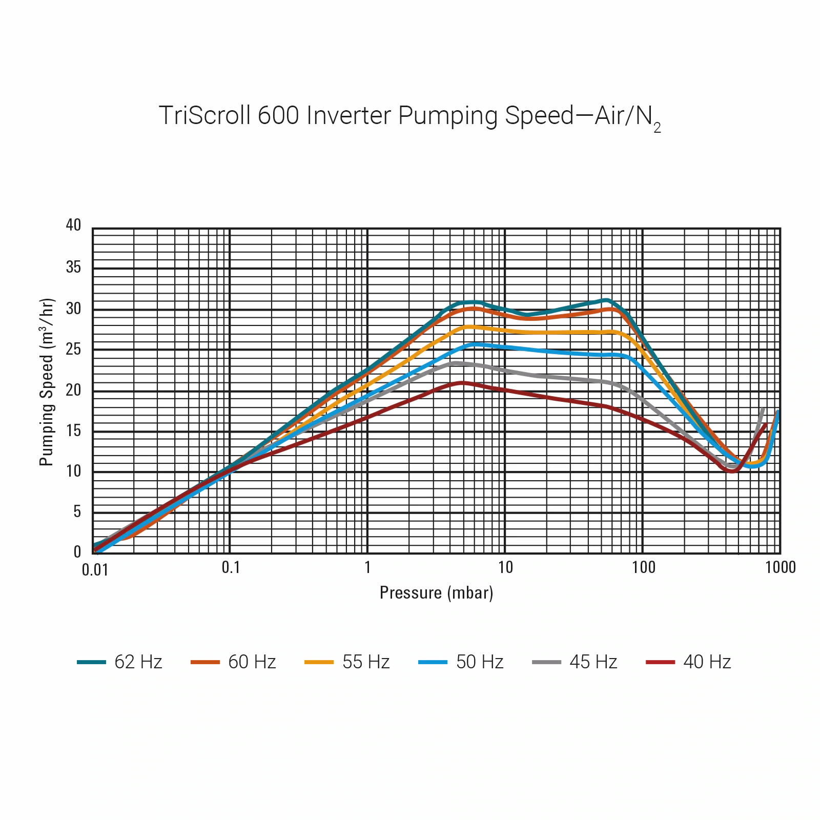 Máy bơm Biến tần TriScroll 600 Inverter sử dụng bộ biến tần mang lại hiệu suất tối ưu và ổn định ở mọi điều kiện điện áp và tần số trên toàn thế giới. Yêu cầu bảo trì thường xuyên của máy bơm cánh gạt quay kín dầu được loại bỏ nhờ máy bơm Biến tần TriScroll 600, đơn giản hóa việc tuân thủ quy định và môi trường, đồng thời loại bỏ chi phí xử lý dầu