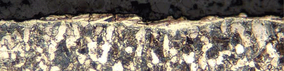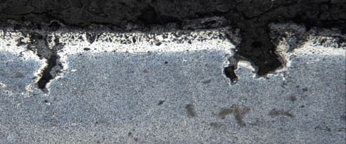 • Hình 8Hình 1-8 Vết nứt hàn trong mối hàn giữa 2 vật liệu đồng và thép không gỉ.