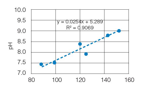 pH của nước ngầm bị ảnh hưởng bởi đá và hóa chất bên dưới mặt đất, cũng như chất lượng nước được thấm qua tầng ngậm nước từ bề mặt. Ở một số nơi, đá vôi trong tầng chứa nước có thành phần chủ yếu là canxi cacbonat (CaCO3). Nước có tính axit sẽ phản ứng với cacbonat trong đá vôi, hòa tan đá vôi và trung hòa axit đến pH khoảng 7.3 Đây có thể là lý do cho các giá trị pH thu được trong ④ và ⑤.