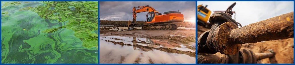 (Hình minh họa: hiện tượng nở hoa của tảo, hoạt động xây dựng và ăn mòn đường ống – là những nguyên nhân phổ biến gây tăng độ đục trong nguồn nước)