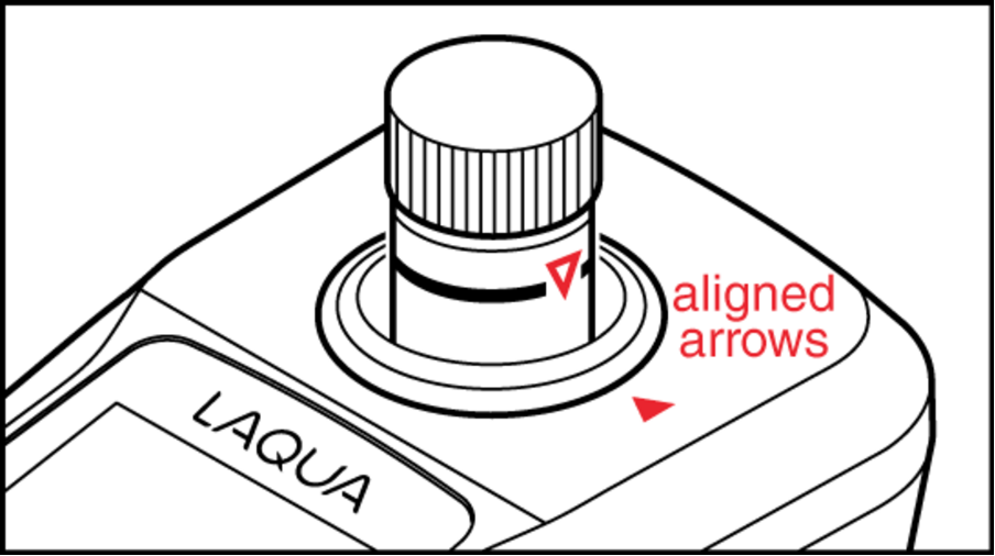 Bước 5: Căn chỉnh mũi tên trên lọ mẫu trùng với mũi tên trên thân máy, sau đó đậy nắp.