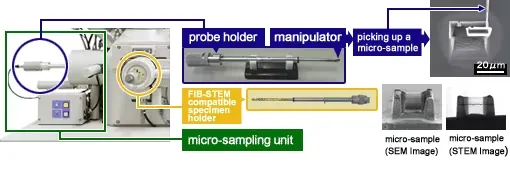 Thiết bị này được sử dụng để chuẩn bị phần wafer mong muốn cho việc phân tích bằng STEM, TEM, v.v., bằng cách chiết tách một mẫu vi mô (micro sample) bằng chùm ion bên trong buồng chân không của hệ thống FIB.