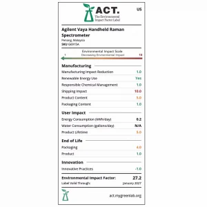 - Chọn tính bền vững: máy quang phổ Raman cầm tay Vaya cho phép thực hiện quy trình làm việc không có chất thải và đã được trao nhãn ACT (Trách nhiệm giải trình, Tính nhất quán, Tính minh bạch) của My Green Lab.