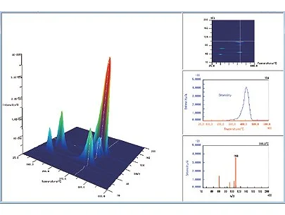 Phần mềm 3D display/analysis software là công cụ chuyên dụng dành cho phân tích khí (EGA) (đặc biệt từ hệ TG-MS), cho phép hiển thị dữ liệu ma trận dưới dạng 3D trực quan và dễ quan sát. Phần mềm giúp người dùng theo dõi hành vi thoát khí của mẫu trên toàn bộ dải nhiệt độ chỉ trong một giao diện, với khả năng xoay 360° để quan sát từ nhiều góc độ khác nhau. Từ dữ liệu 3D, người dùng có thể dễ dàng trích xuất dữ liệu 2D như phổ khối tại một nhiệt độ bất kỳ hoặc đường ion m/z cụ thể chỉ bằng thao tác chuột, giúp phân tích nhanh chóng và hiệu quả. Ngoài ra, phần mềm hỗ trợ hiển thị đồng thời dữ liệu phân tích nhiệt (STA, TG-DTA) và dữ liệu MS, lưu ảnh snapshot, và tích hợp tìm kiếm thư viện NIST để nhận diện khí tự động, từ đó nâng cao khả năng phân tích định tính trong các ứng dụng nghiên cứu vật liệu và hóa học.