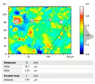 Tự động tính toán dữ liệu từ bề mặt mẫu hoặc mặt cắt ngang địa hình để xác định độ nhám bề mặt và chiều cao cấu trúc, hoặc thực hiện các phép đo khác nhau giữa 2 điểm.