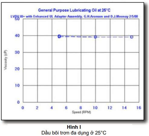 Dầu thể hiện tính chất Newton, với độ nhớt ổn định qua các tốc độ cắt đã được thử nghiệm. Độ nhớt giảm khi nhiệt độ tăng, đây là một đặc tính điển hình của dầu bôi trơn giúp duy trì khả năng lưu chuyển ở nhiệt độ cao hơn.