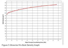 Mật độ khối: Hình 3 cho thấy mật độ khối của hỗn hợp bột sốt nâu ở các mức ứng suất nén khác nhau. Hỗn hợp sốt nâu có mật độ đổ đầy khoảng 475 kg/m³, mật độ này tăng lên xấp xỉ 660 kg/m³ khi ứng suất nén đạt khoảng 4.75 kPa. Một loại bột có độ lưu chuyển tự do thường có sự thay đổi nhỏ về mật độ khối, trong khi bột có tính kết dính sẽ cho thấy sự gia tăng đáng kể. Sự gia tăng mạnh mẽ của mật độ khối cho thấy hỗn hợp bột sốt nâu này có tính kết dính rất cao.