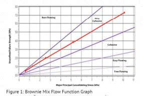 Kết luận: Hỗn hợp bột sốt nâu là loại bột rất kết dính ở mọi mức ứng suất nén, điều này gợi ý rằng các vấn đề về khả năng lưu chuyển có thể xảy ra nếu không có các biện pháp phòng ngừa thích hợp. Các vấn đề tiềm ẩn bao gồm: